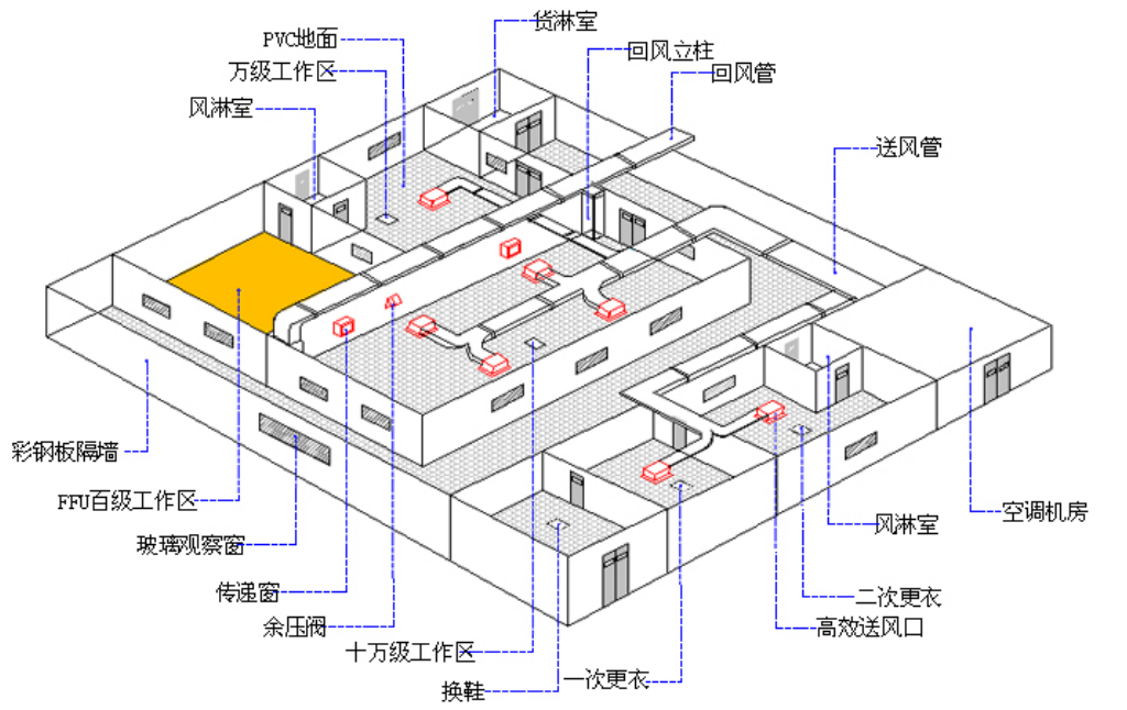 無塵車間也稱凈化車間,是指將一定空間規(guī)范內之空氣中的微粒子、有害空氣、細菌等之污染物排除,並將室內之溫度、潔凈度、室內壓力、氣流速度與氣流分布、噪音振動及照明、靜電控制在某一需求范圍內,而所給予特別設計之房間。無塵車間亦即是不論外在之空氣條件如何變化,其室內均能俱有維持原先所設定要求之潔凈度、溫濕度及壓力等性能之特性。無塵車間最主要之作用在于控制廠品(如硅芯片等)所接觸之大氣氣的潔凈度日及溫濕度,使廠品能在一個良好的環(huán)境空間中生廠、制造,無塵車間也被我們稱之為潔凈室。